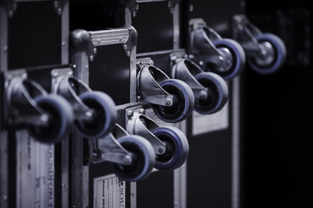 Most of our flightcases — especially heavy or bulky units — are equipped with high-quality wheels for easy maneuvering on stages and in tight backstage areas.