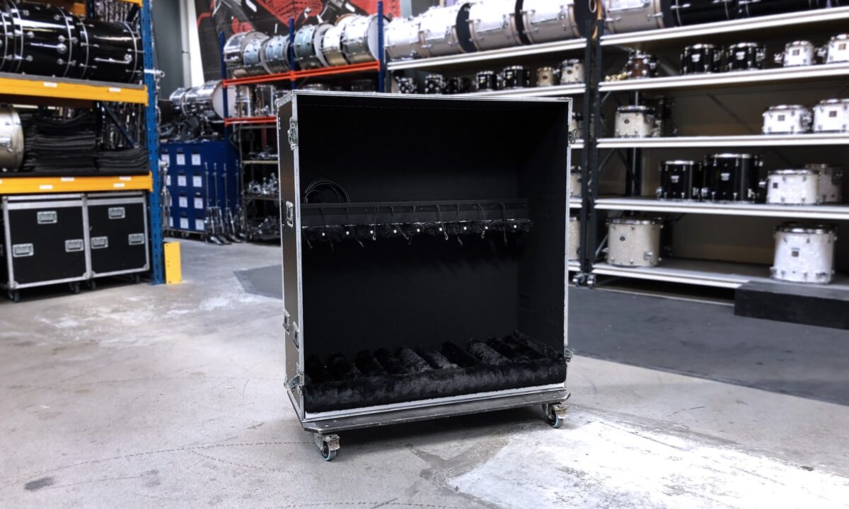 Our guitar and bass vaults offer maximum protection and efficient handling for touring rigs of any size. Each vault is built as a rugged flightcase with secure internal support, ensuring instruments stay safe during transport, load-ins, and fast backstage changes. We provide vaults in multiple configurations — from compact 6-way solutions to large 15-way units — making them ideal for everything from club tours to major festival productions.